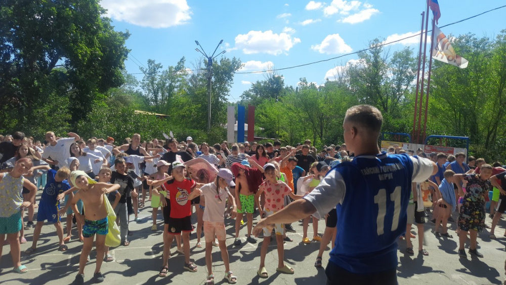 В детском оздоровительном лагере «Солнечная горка» прошла акция «Зарядка со стражем порядка». Провел ее оперуполномоченный отделения уголовного розыска ОМВД России по Гайскому городскому округу, лейтенант полиции Дмитрий Демидов.