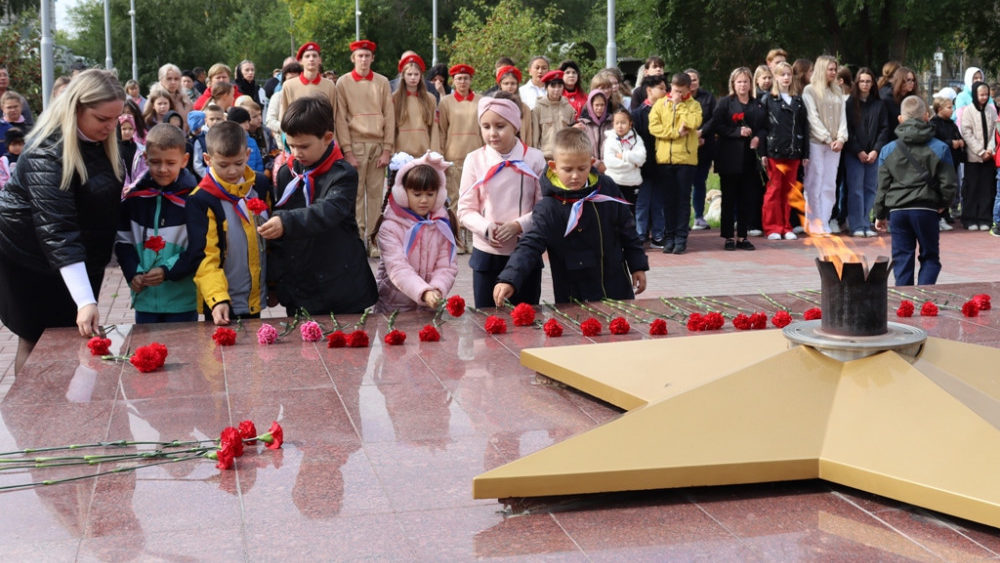 В память о жертвах трагедии, обо всех жертвах терроризма была объявлена минута молчания. К Вечному огню собравшиеся возложили цветы.