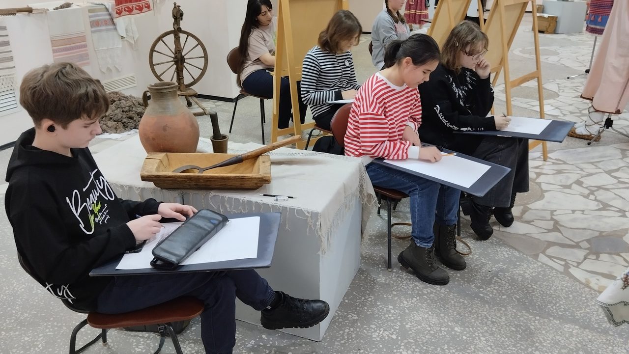 Окружающая обстановка, экспонаты выставки «Все мы едины, все мы оренбургцы» очень вдохновили юных художников.
