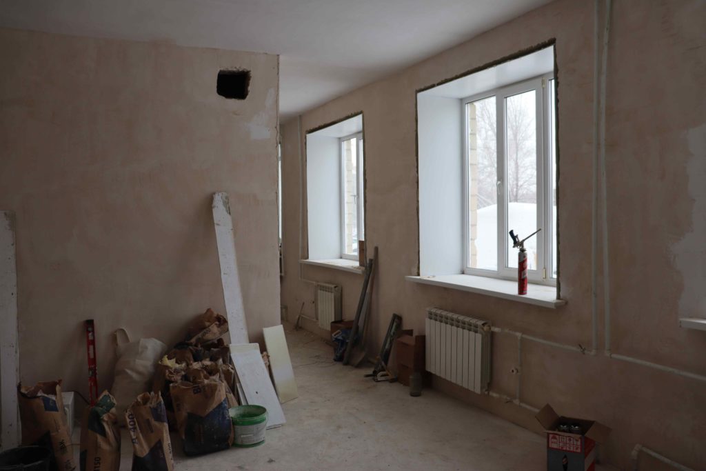 Проведена перепланировка помещения под размещение центрального стерилизационного отделения. После завершения всех работ новое оборудование приобретут для прачечной и центрального стерилизационного отделения: стиральные, сушильные машины, дезинфекционные камеры, аквадистиллятор и другое.