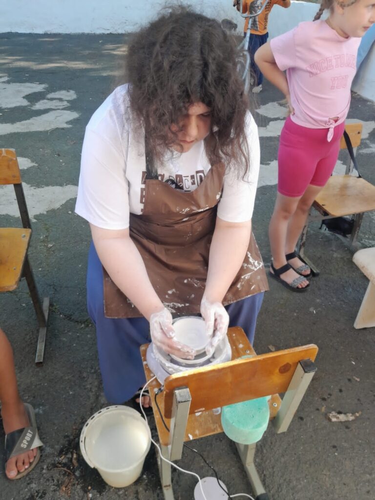 Ребята с огромным удовольствием осваивали навыки работы с глиной на гончарном круге.