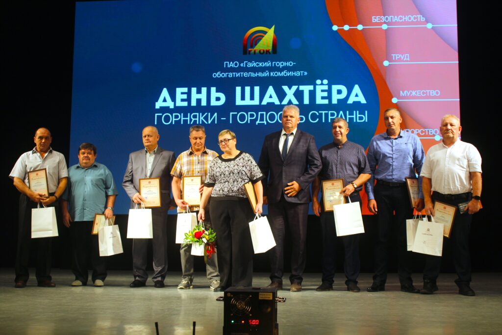 Работников ПАО «Гайский ГОК» с профессиональным праздником поздравили министр промышленности и энергетики Оренбургской области Алексей Шарыгин, депутат Законодательного Собрания региона Евгений Малюшин, глава Гайского городского округа Олег Папунин, директор горно-обогатительного комбината Всеволод Гольцов.