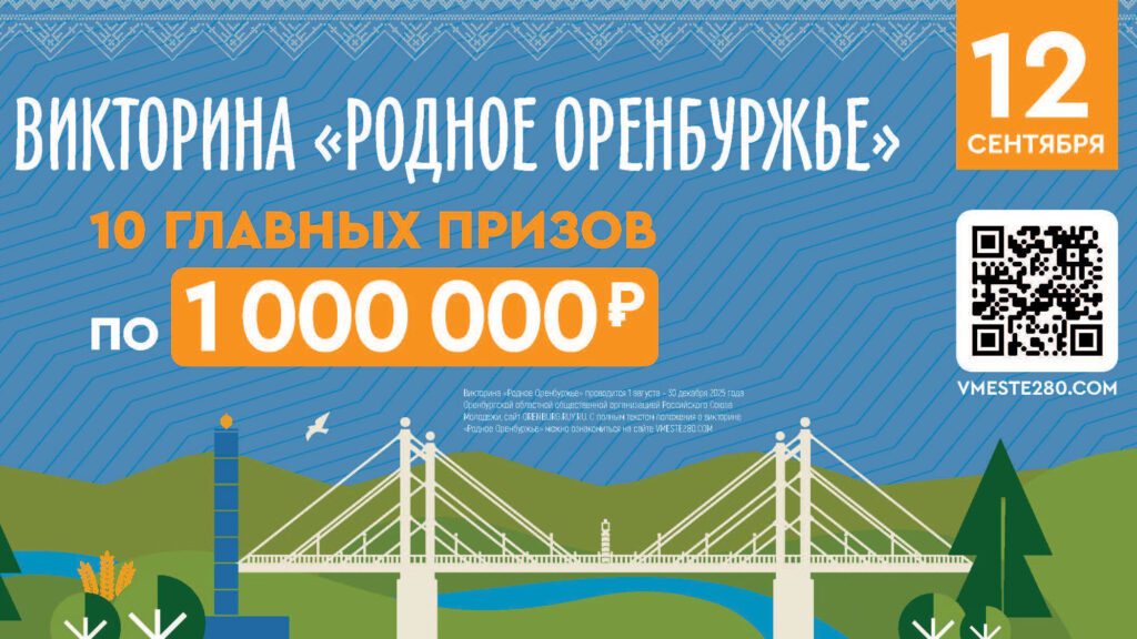 Участвовать в викторине могут только совершеннолетние жители региона и только 12 сентября. Розыгрыш 10 суперпризов по 1 000 000 рублей и других призов пройдет в прямом эфире телеканала ОРТ, в телеграм-канале «Родное Оренбуржье» и группе ВКонтакте.
