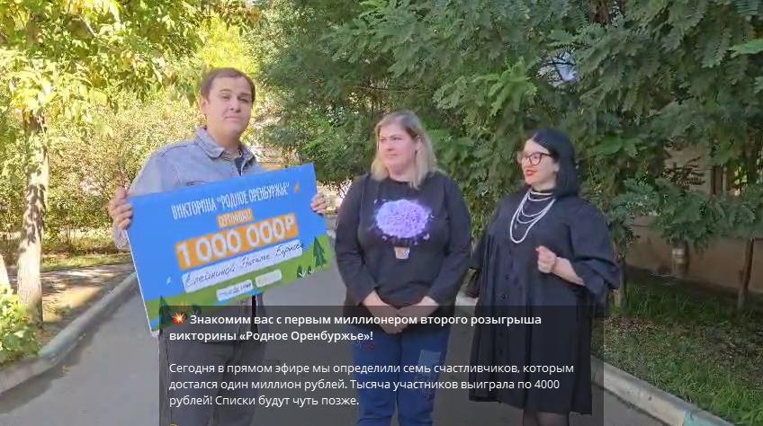 Сегодня 13 сентября объявлен первый миллионер второго розыгрыша викторины «Родное Оренбуржье».