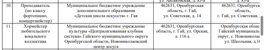 В Гайском округе на данный момент открыты две вакансии, на которые распространяется программа «Земский работник культуры». В детскую школу искусств ищут преподавателя по классу фортепиано, концертмейстера, а в Новониколаевский центр досуга — хормейстера любительского вокального коллектива.