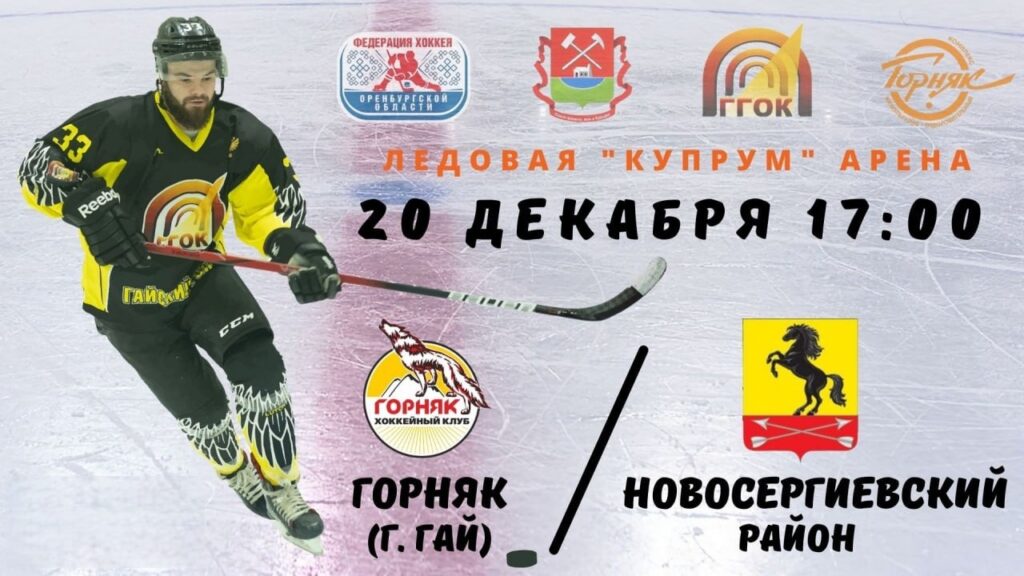 В Гайском округе состоится очередной домашний матч хоккейного клуба «Горняк» (0+). Игра пройдет в ледовой арене «Купрум» в рамках Чемпионата Оренбургской области по хоккею с шайбой среди мужских команд сезона 2025–2026 годов.
