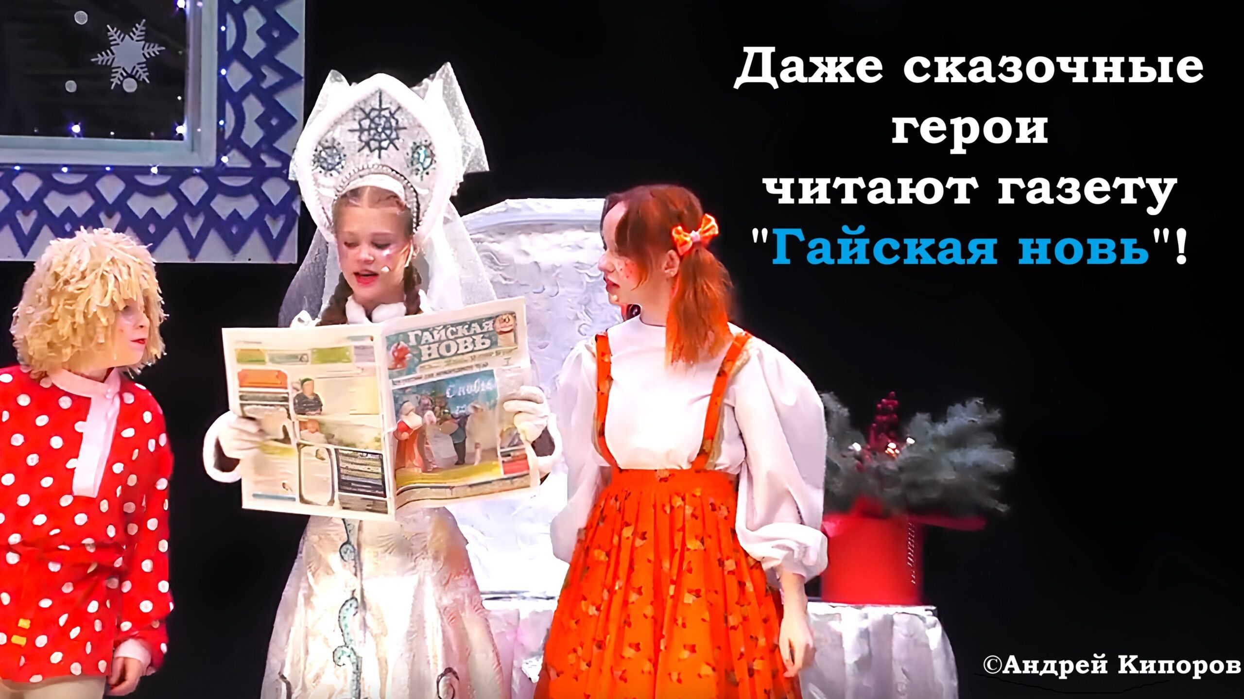 Внимание! Спецвыпуск газеты «Гайская новь» был отпечатан в единственном экземпляре для сказочных героев новогодней сказки народного театра. За фотографию со спектакля благодарим Андрея Кипорова.