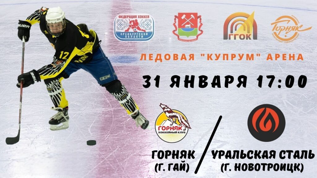 В Гайском округе состоится домашний матч хоккейного клуба «Горняк». Встреча пройдет в рамках Чемпионата Оренбургской области по хоккею с шайбой среди мужских команд сезона 2025–2026 годов.