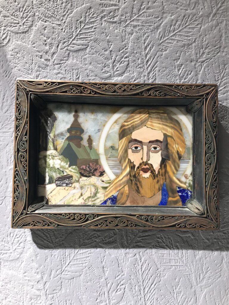 Богатейшая цветовая палитра точно подобранных, различных по структуре, форме и размеру камней позволяет Шевцову создавать сложные, поражающие силой эмоционального заряда, трудоемкие сюжетные композиции.